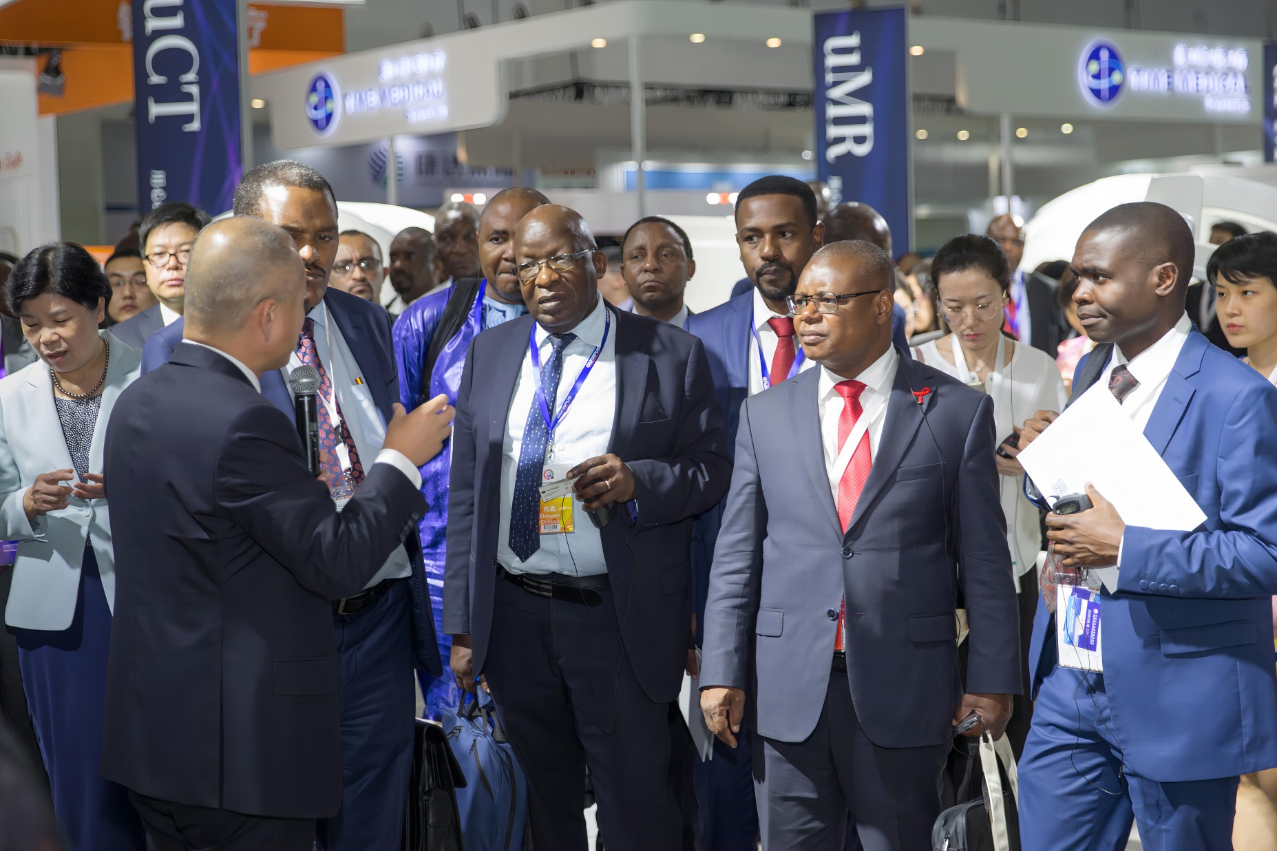 中国国际医用仪器设备展览会暨技术交流会(C H I N A -HOSPEQ)期间,联影展台连续几年迎来“一带一路”沿线国家卫生部官员及国际组织领导的参观考察。联合国副秘书长米歇尔·西迪贝、WHO总干事谭德赛、多国卫生部长……一边倾听,一边仔细观摩眼前的先进诊疗装备与数智化解决方案,不时发出惊讶的感叹,心中期待未来的合作。