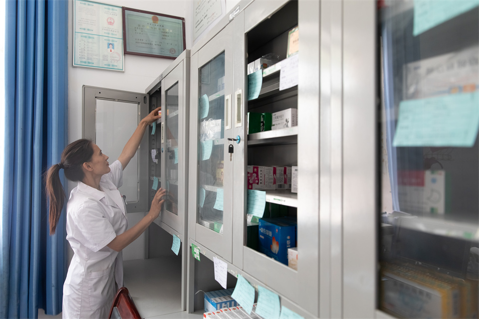 吾热古丽日常取药,悉心关爱着全村老百姓的健康